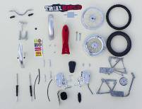 The production of every miniature follows the following process: manufacturing of the handlebars and the chassis in Zamak's pressure injection, an inverted matrix compound of cold cutting and drawing for the development of the petrol tank,an injection of thermoplastic of PVC for the tyres and a careful and detailed hand assembly of each one of the replicas.